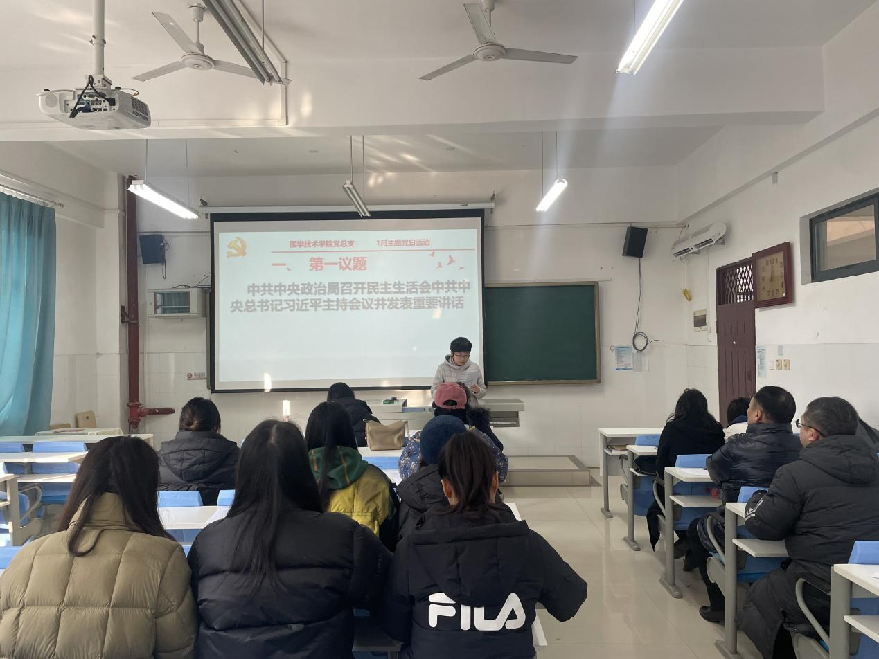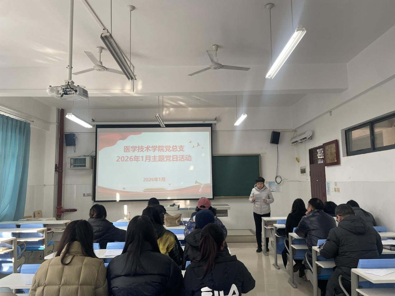 2026年1月9日上午,医学技术学院党总支在南园教5-2-1开展1月“决战收官交答卷实干笃行谋新篇”主题党日活动,会议由党总支书记、院长杨丹阳同志主持,全体党员参加。