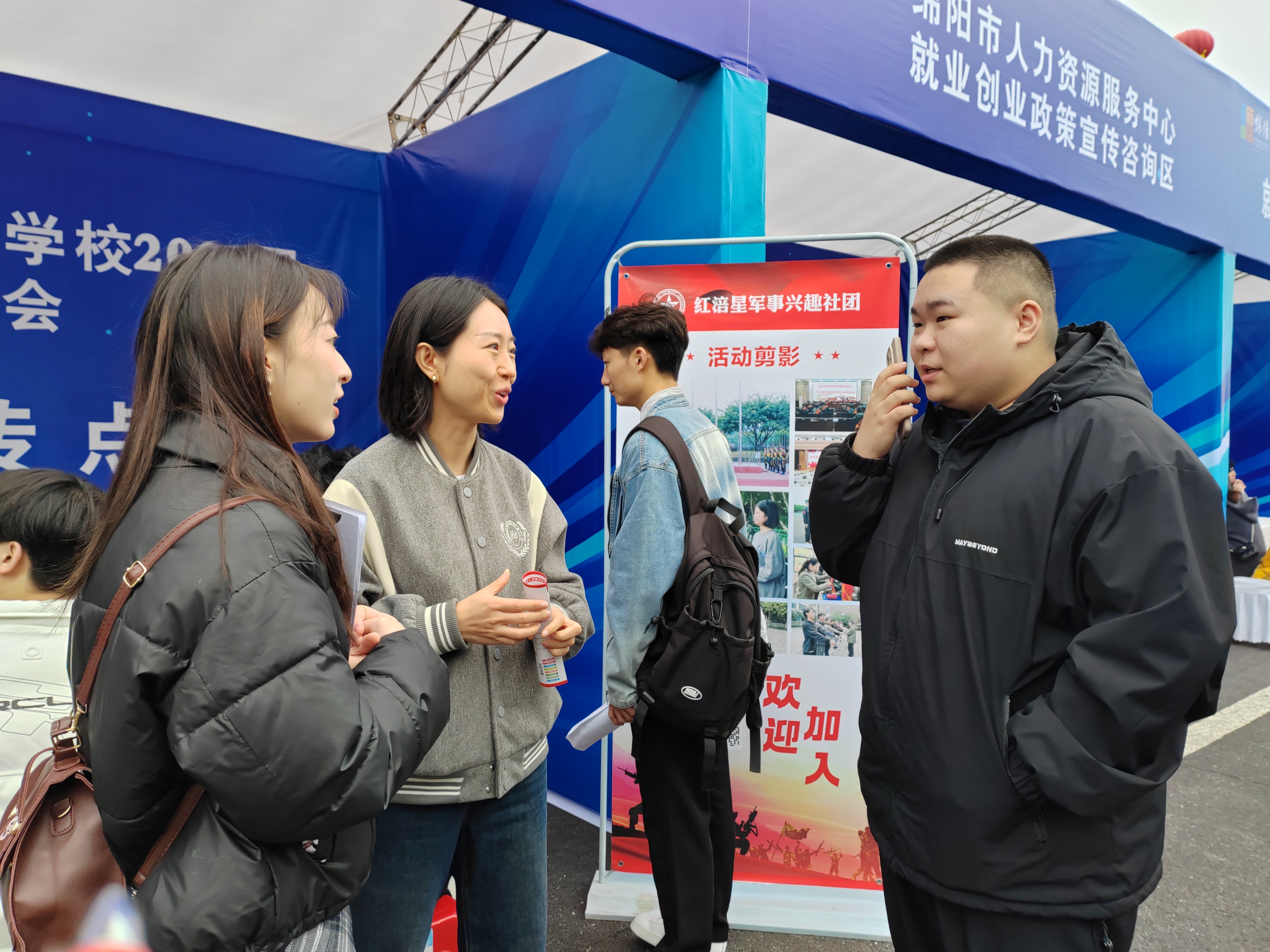 学院组织学生参加学校2025届毕业生双选会。双选会现场人潮涌动,气氛热烈有序。为满足毕业生多样化求职需求,提高毕业生求职应聘竞争力,双选会现场设置了就业指导、简历问诊、就业政策宣传、征兵宣传和资料打印等服务点,一站式全方位为毕业生求职应聘保驾护航。同时,学院党总书记林芝、学院院长杨丹阳、就业干事及毕业班辅导员均到现场为同学们的应聘提供帮助。