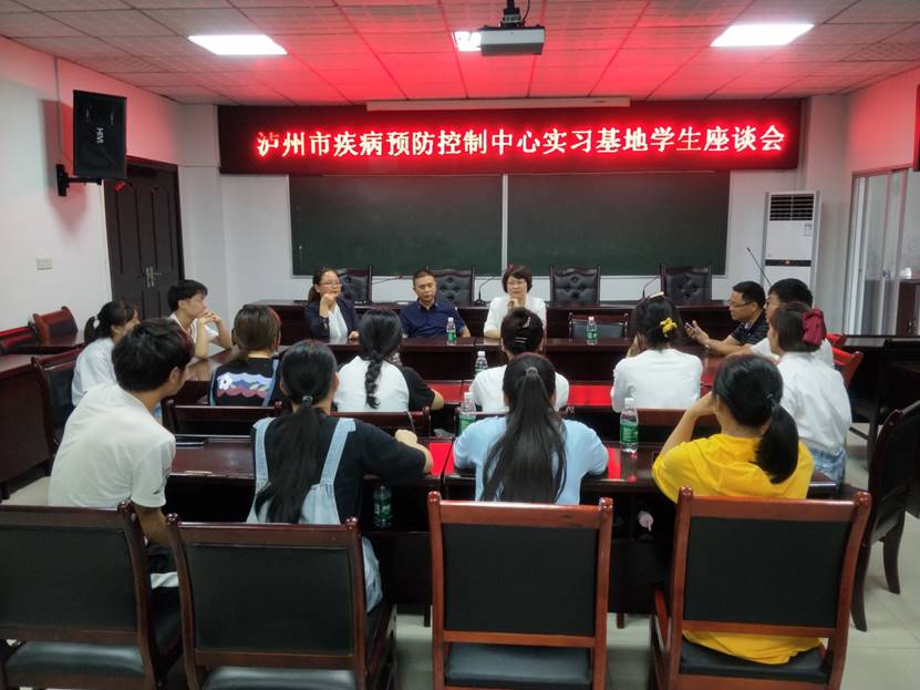 座谈会上,泸疾控先主任介绍了实习生的具体情况,对我院学生在实习岗位上的良好表现给予了充分的肯定。我校代书记向泸疾控对我校教学实习工作的大力支持表示衷心感谢;同时勉励同学们虚心求教,不断增长知识、增长才干、增长阅历,圆满完成实习任务;特别强调同学们在实习工作岗位及生活中要注意安全、遵纪守法。