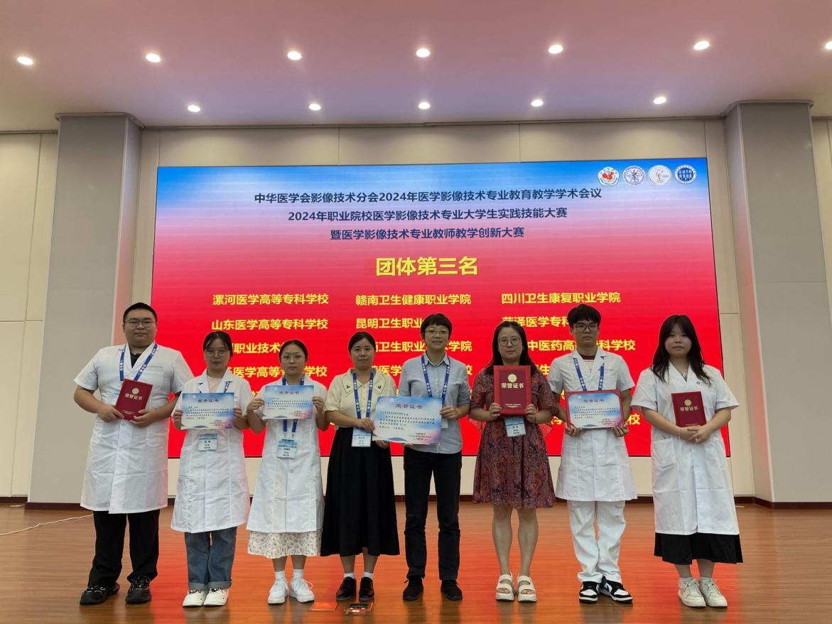 9月20日-9月22日,由中华医学会影像技术分会主办,江西医学高等专科学校承办的2024年职业院校医学影像技术专业大学生实践技能大赛在江西上饶举办。本次大赛吸引了来自全国59所职业院校的300多名学生参加比赛,在激烈竞争中,参赛学生在DR检查技术、MRI检查技术、超声检查技术及医学影像诊断四个项目中均获得第三名的成绩,并同时获得团体第三名。