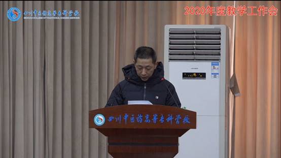 随后,教学工作专题发言中,王绍勇副院长做了《密切行业合作深挖内涵建设践行优质培养》的交流,以我校与泸州疾病预防控制中心联合举办卫生检验与检疫技术疾控教学班的实施做了全面细致的发言。会议议程还有教务处综合科吴静蓉科长对2020年度教学改革工作进行总结、督导主任刘兴华老师做2020年度督导工作总结、教务处处长曹艳霞对十四五教学工作规划思路讲解。最后梁晓峰副校长讲话,在总结2020年工作的基础上,对2021年的教学工作提出四点要求:不断提升课题教学质量、充分重视教研活动的作用、持续提高专业建设水平和切实提升教学管理效率。