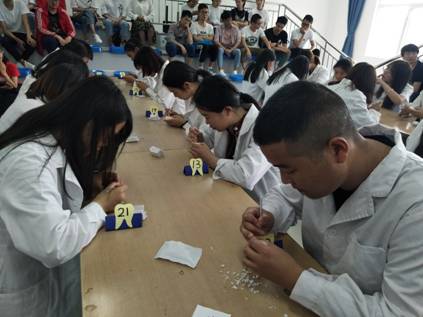 比赛由医疗技术学院主办,成都口口齿科有限公司和学校实验实训中心协办。21名参赛选手来自于2016级口腔医学技术专业,口腔技术专业2016级全体同学及部分2017级学生代表全程观摩了比赛。成都口口齿科有限公司为本次比赛提供了赞助,学院团学会承担了赛场布置和比赛主持等工作。比赛的项目为“上、下颌第一磨牙雕刻”,选手操作时间90分钟。