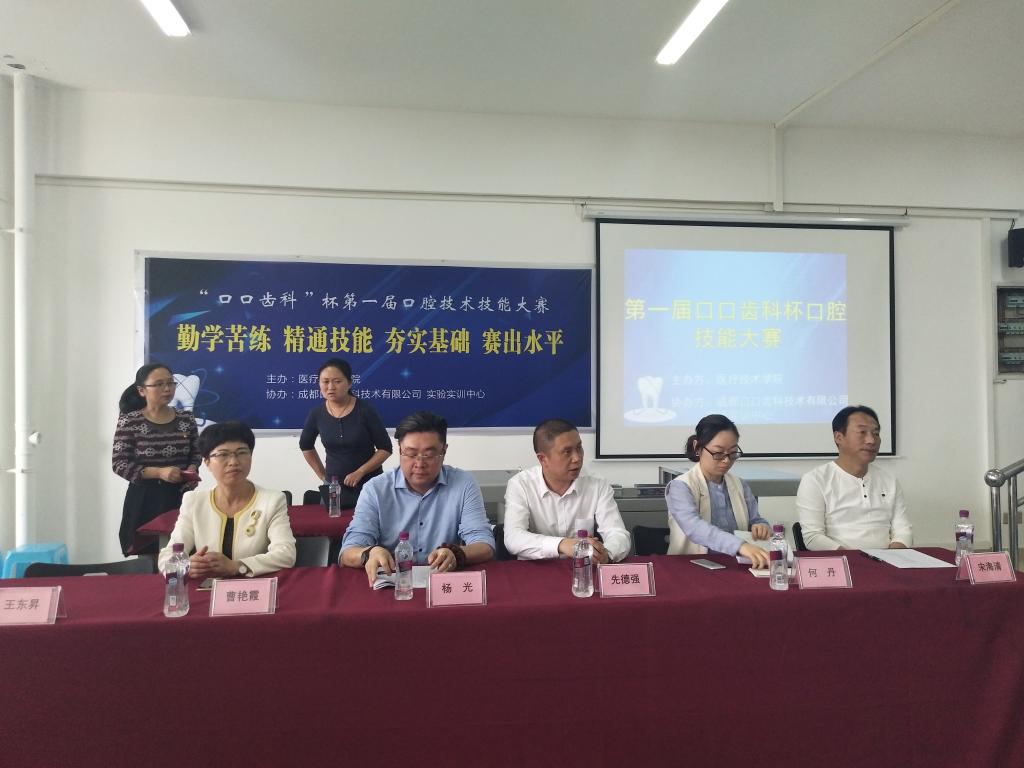 2018年4月19日下午,医疗技术学院在学校4号实验楼507实训观摩室圆满举办了首届“口口齿科杯”口腔技能大赛。学校副校长先德强、成都口口齿科有限公司副总经理杨光、教务处主任曹艳霞、实验实训中心副主任王东昇、学院党总支书记刘利、学院副院长何丹、学院副院长王绍勇、口腔医学技术专业负责人宋海清、口腔医学技术专业辅导员赵娜等出席了比赛。