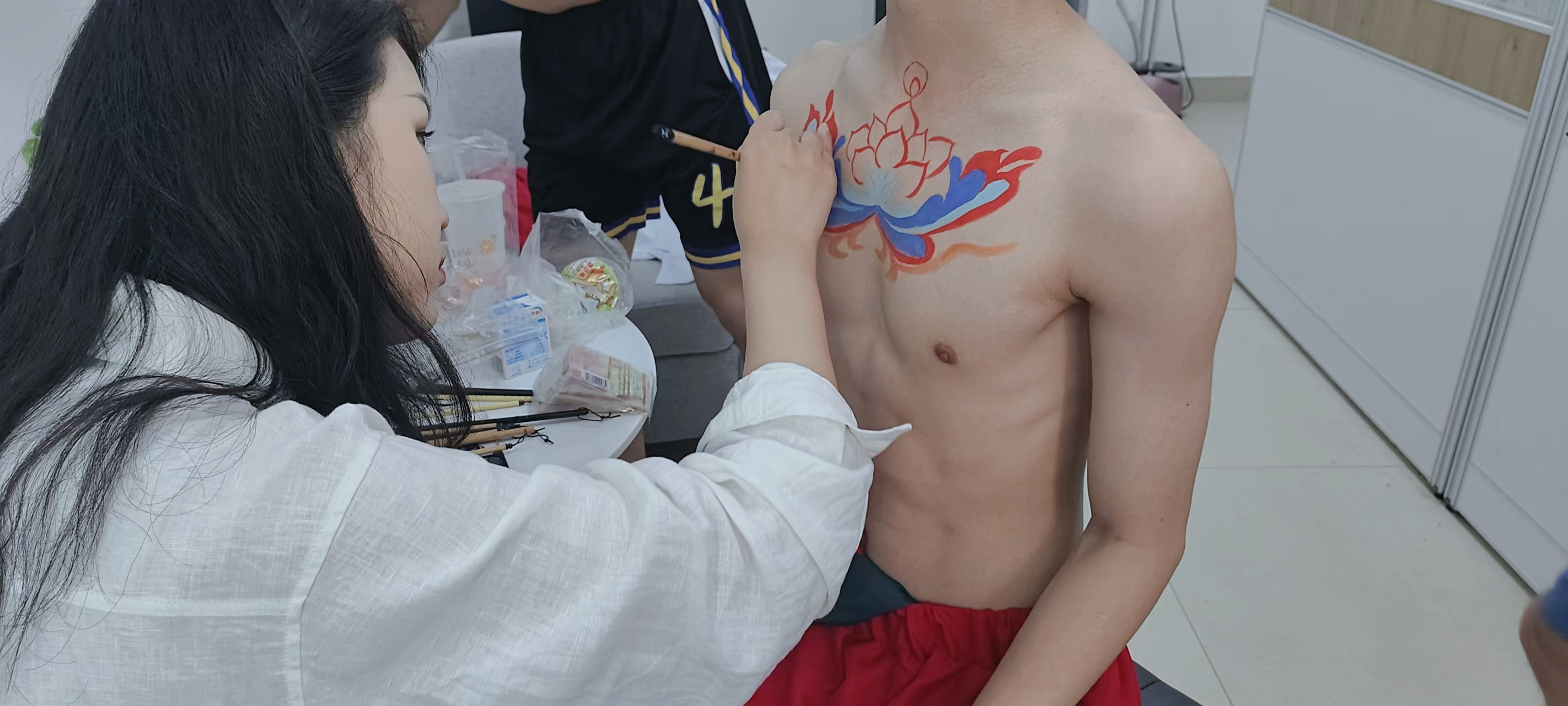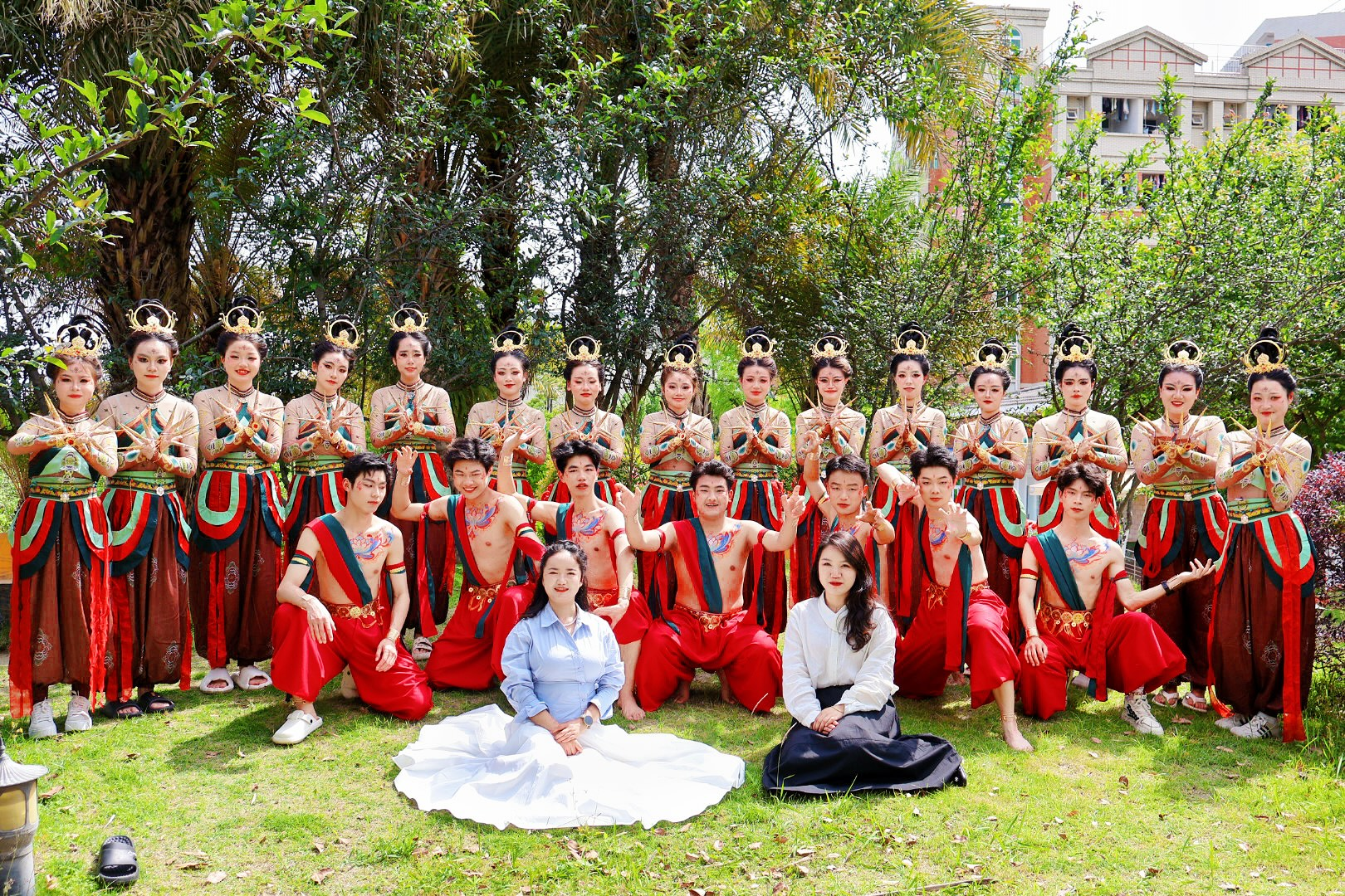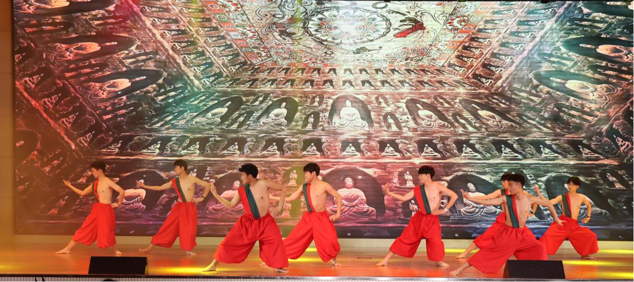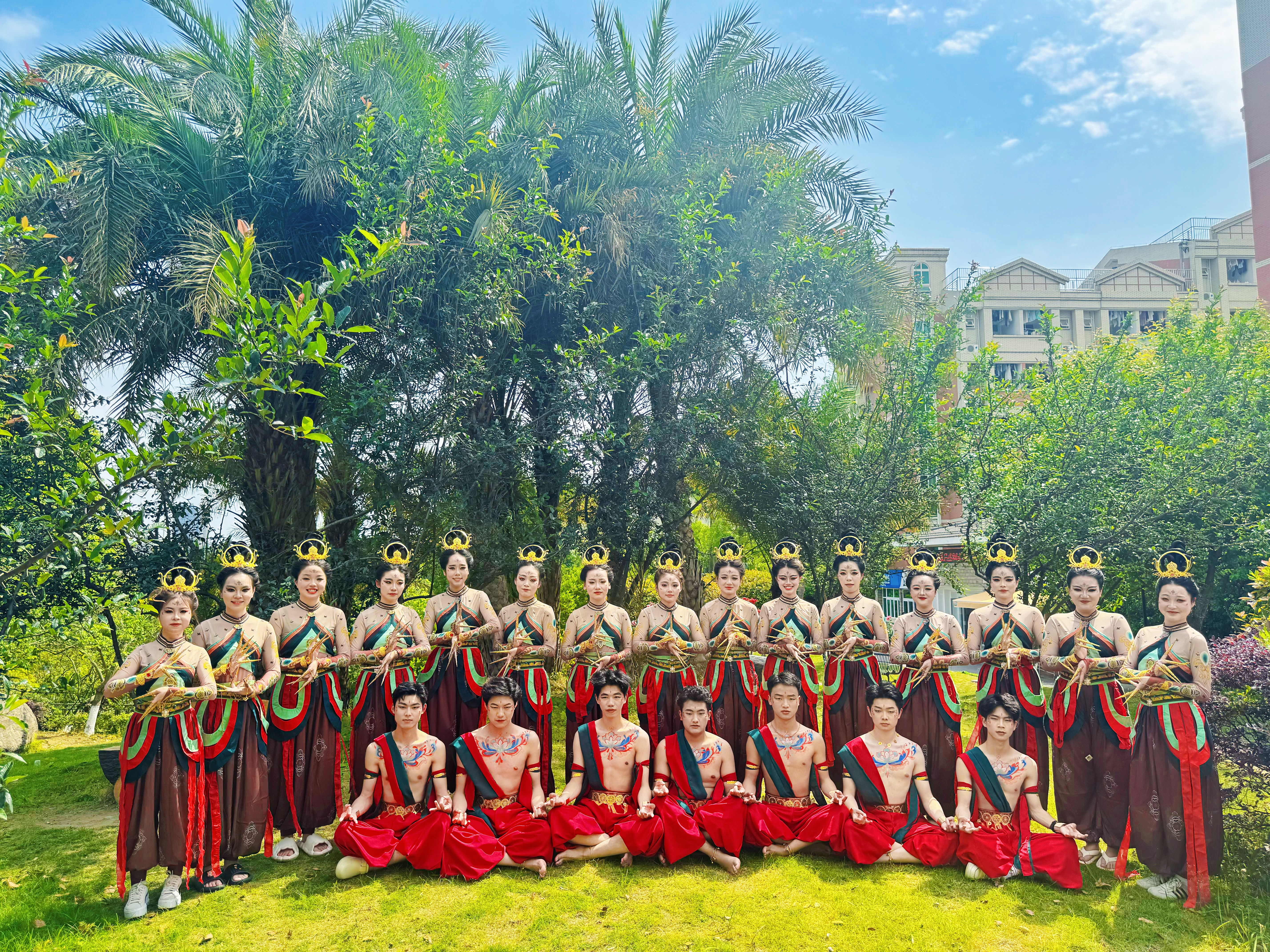 该节目由景淋、刘子琦两位教师指导,林希、方凤麟、王乙越共同参与编排。从创意构思到动作设计,团队深度融合敦煌艺术元素与当代舞蹈语汇,展现出医学技术学院学子的艺术创造力与家国情怀。为提升节目妆造效果,刘子琦老师亲手制作所有舞蹈饰品和设计男生身体彩绘,景淋老师完成男生服装的设计与制作,为舞台效果注入匠心细节。