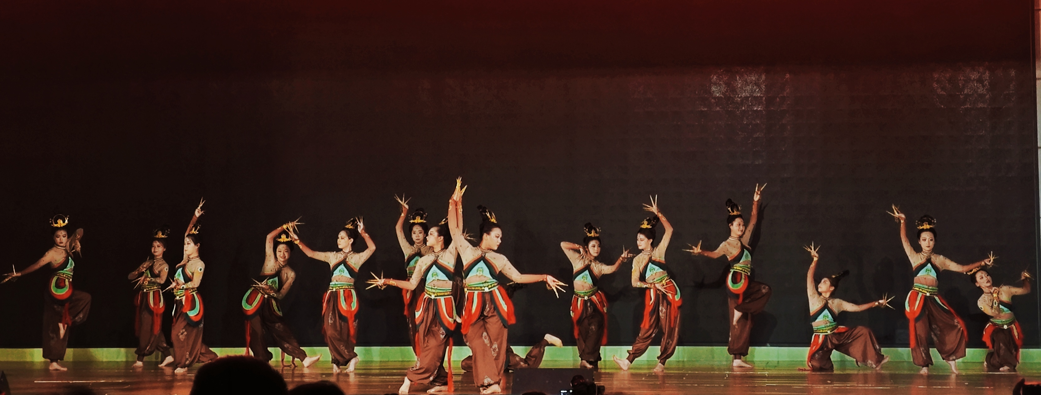 《丝路长歌·盛世和鸣》以千年丝路文明为脉络,通过舞蹈语言再现敦煌壁画的神韵与大漠驼铃的悠远。舞台上,舞者们以飞扬的衣袂为笔,用胡旋舞步卷起历史烟霞,将佛光与星月交织的丝路神话娓娓道来。节目紧扣“一带一路”时代主题,以青年之姿续写文明和鸣,用现代艺术诠释古丝路的开放包容精神,赢得现场观众与评委的高度赞誉。