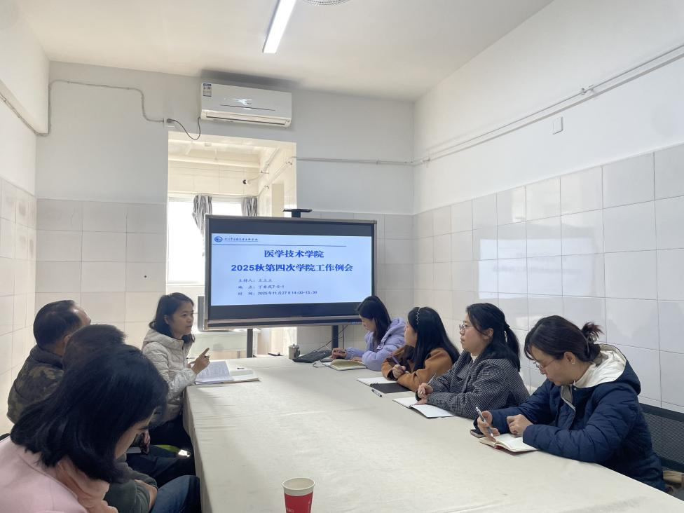 2025年11月27日,医学技术学院在丁香苑7-5-1开展秋季学期第四次教学工作例会。会议由副院长王立立主持,全体教师参加。