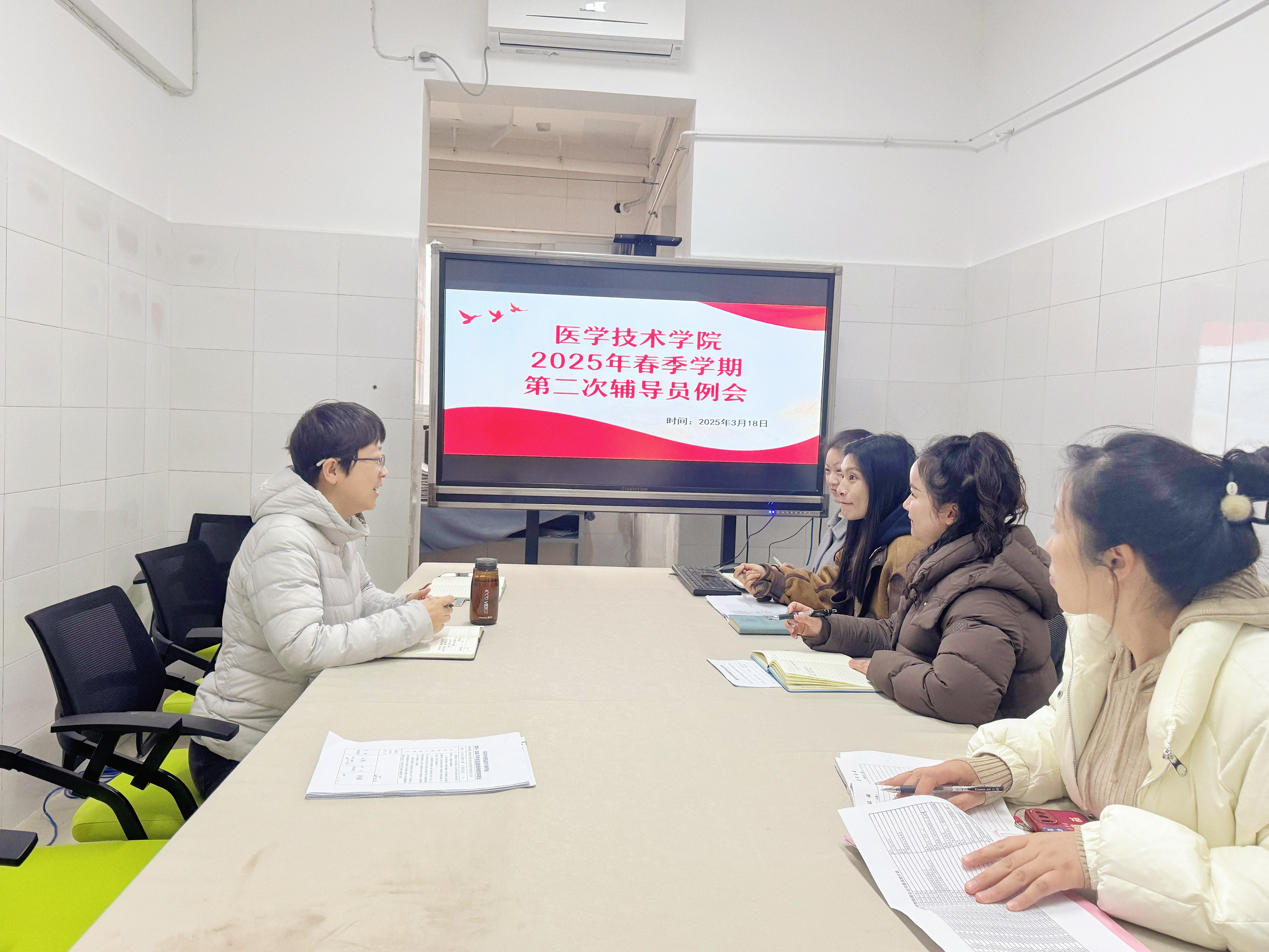 2025年3月18日,医学技术学院召开春季学期第二次辅导员工作例会。会议由学生科科长景淋主持,学院党总支书记、专兼职辅导员及学管干事参会,就业干事李安龙列席。