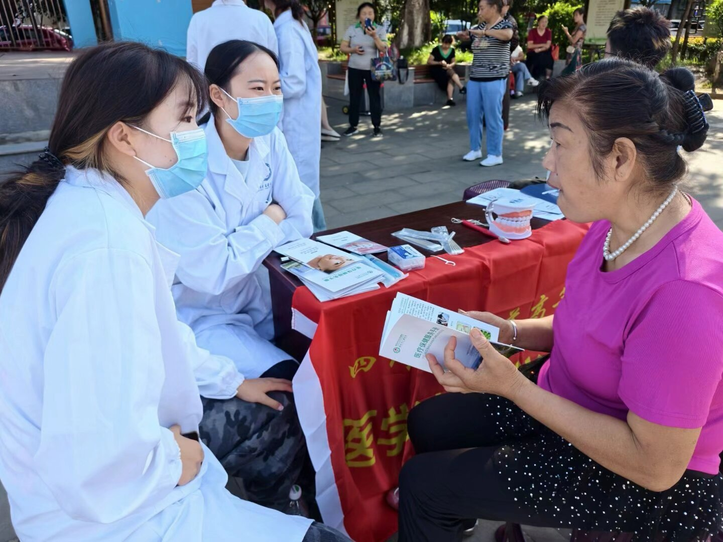 活动现场,学生志愿者们化身“口腔健康科普员”,通过设立咨询台、发放图文并茂的宣传手册,向过往群众系统讲解口腔疾病预防、正确刷牙方式、儿童龋齿防护等实用知识。针对不同群体的口腔特点,他们为儿童提供“趣味护牙口诀”,为老年人详解义齿清洁与保养技巧,用通俗易懂的语言化解专业术语,让健康理念深入人心。