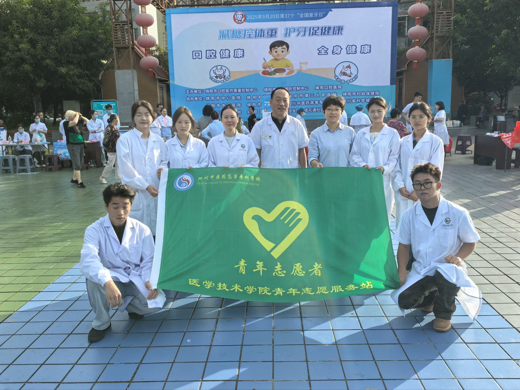 2025年9月20日,第37个“全国爱牙日”如约而至。此次以“口腔健康全身健康”为主题,由绵阳市口腔医疗质量控制中心主办的大型宣传活动在元通文化广场温情启幕。医学技术学院的数名学生志愿者在我院党总支书记、院长杨丹阳,口腔医学技术专业负责人宋海清教授及专业教师魏美娇的带领下,以专业志愿服务者的身份投身其中,将课堂知识转化为护牙行动,为市民送上“口腔健康大礼”。