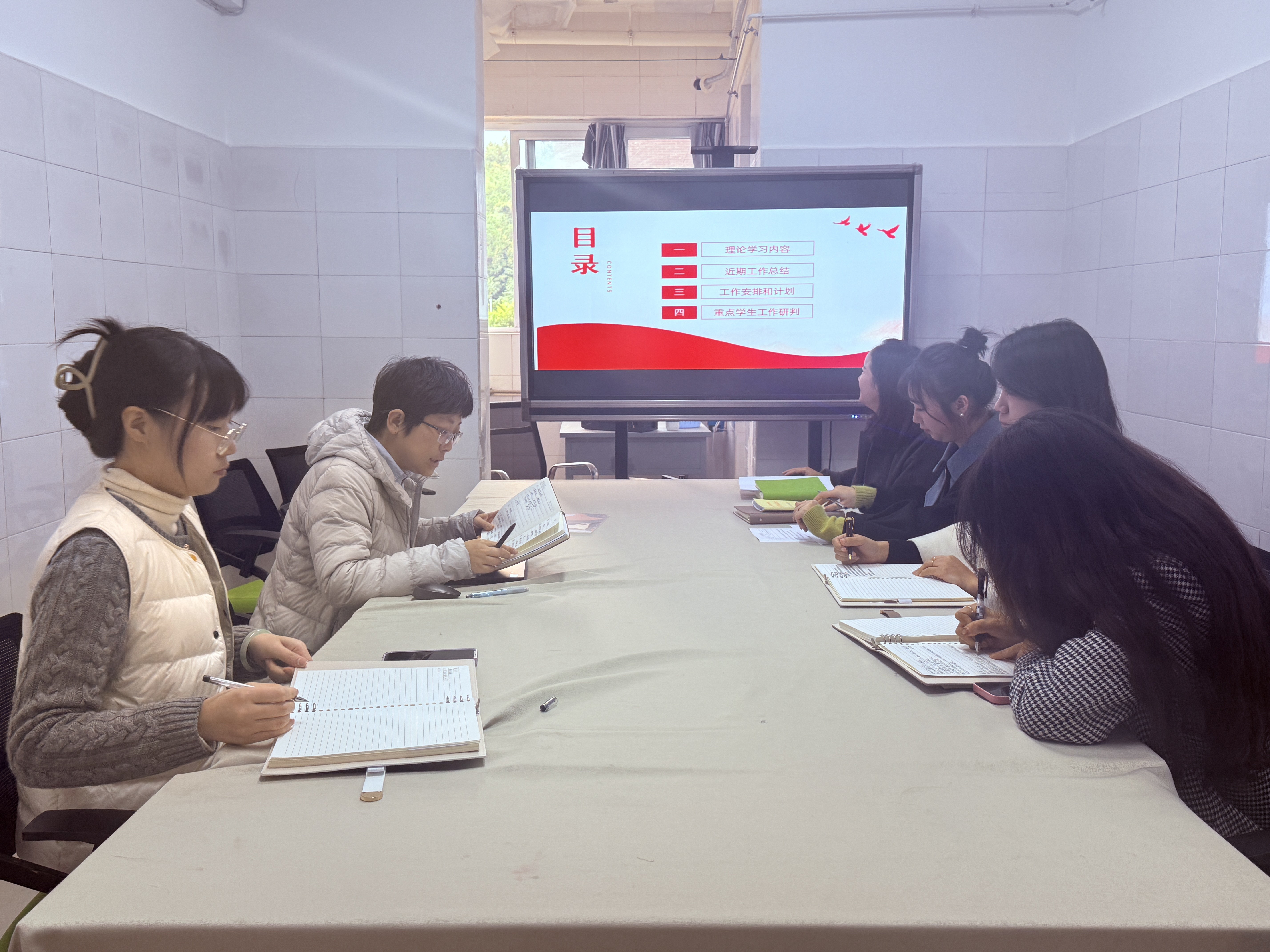会议首先总结了近期工作成果。文体活动方面,成功组织学生积极参加“杏林杯”篮球赛、啦啦操比赛,丰富了校园文化生活;职业发展与资助工作中,职业生涯规划大赛提升了学生职业规划意识,学生档案核查及“筑梦奖学金”评选工作规范了资助流程,实现了活动育人与管理育人的有机结合。